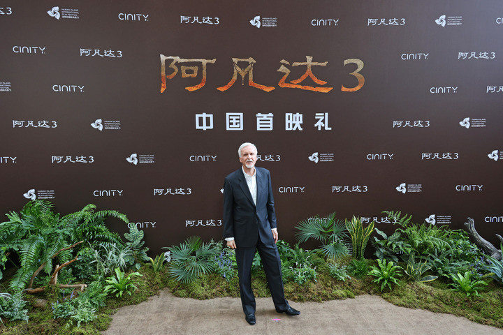 12月8日,电影《阿凡达3》中国首映礼在海南三亚举行,导演詹姆斯·卡梅隆亮相首映礼。(新华社发)