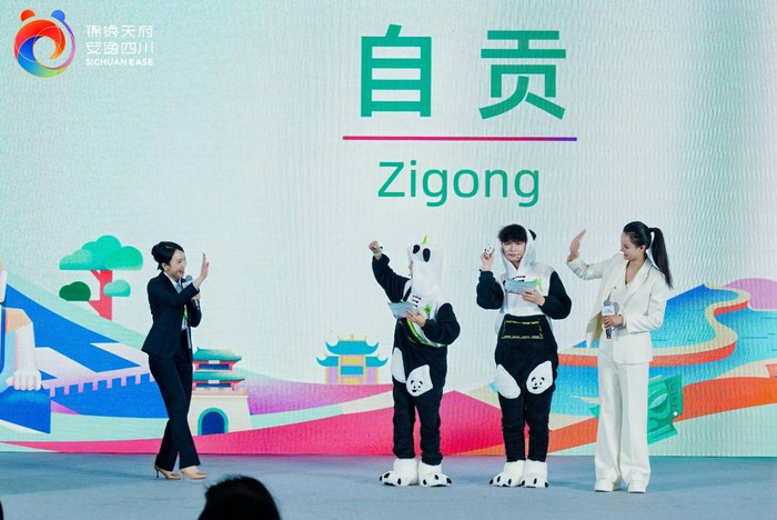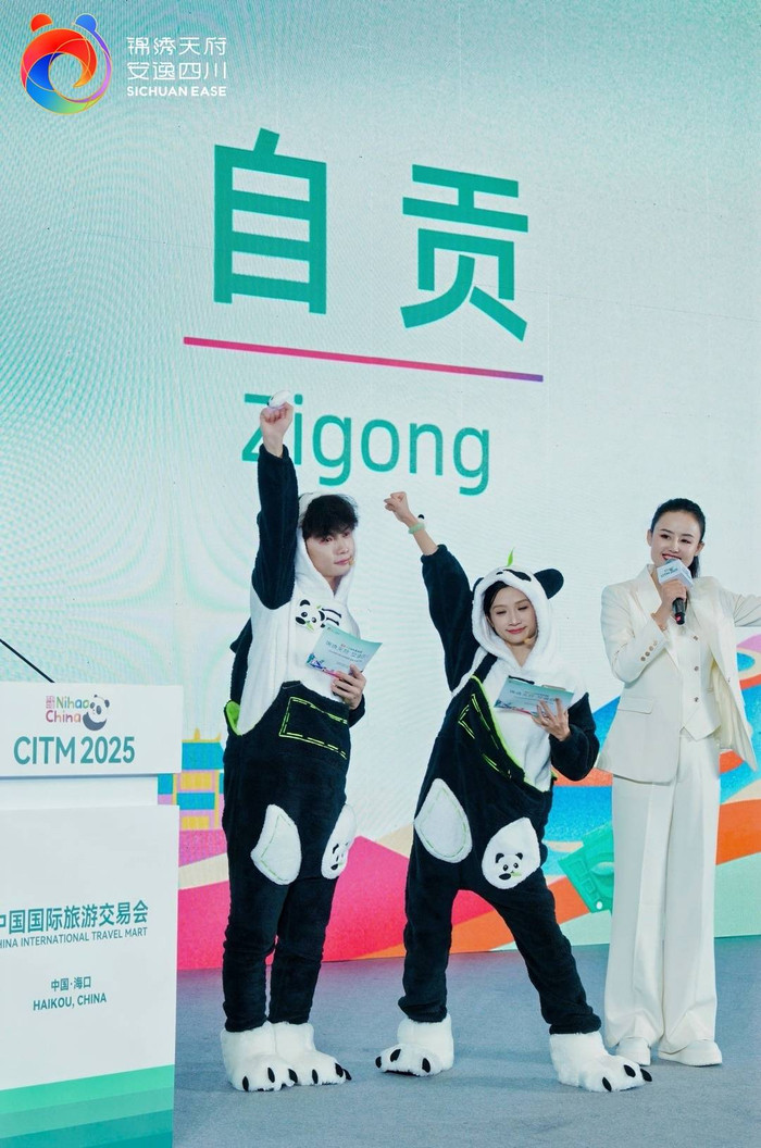 推介尾声,自贡文旅推介官面向现场的大熊猫贡贡、舜舜发出亲切邀约:“可儿的贡贡、舜舜,你们在海南的椰风海韵里生涯得太欢然啦!咱们自贡然而‘千年盐都、恐龙之乡、中国灯城、好意思食之府’,不错来方特恐龙王国游玩,有超多恐龙伙伴等着和你们交一又友,还有竹苞松茂的自贡灯会,能把夜晚装点成梦境童话天下,更有鲜香麻辣的盐帮菜等着你们试吃。接待你们带着小伙伴们,来岁春节来自贡作客,一齐逛灯会、看恐龙、品好意思食,感受这座矿藏城市的私有魔力!”