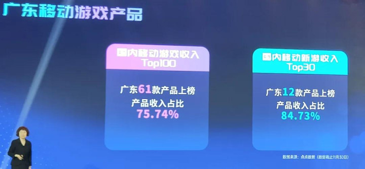按单款移动游戏收入来看,广东有61款移动游戏冲入收入TOP 100(数据开端点点数据),收入占TOP 100的75.74%;广东有12款移动新游冲入国内新游收入TOP 30,收入占TOP 30的84.73%。