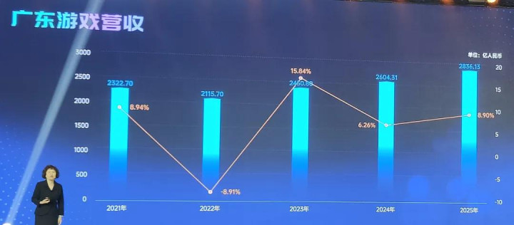 2025年,广东游戏阛阓营收为2836.13亿元(不含小体式游戏),同比增长约8.9%,收入增速独特世界水平(7.7%),同期,该营收占国内游戏阛阓营收界限的80.85%。